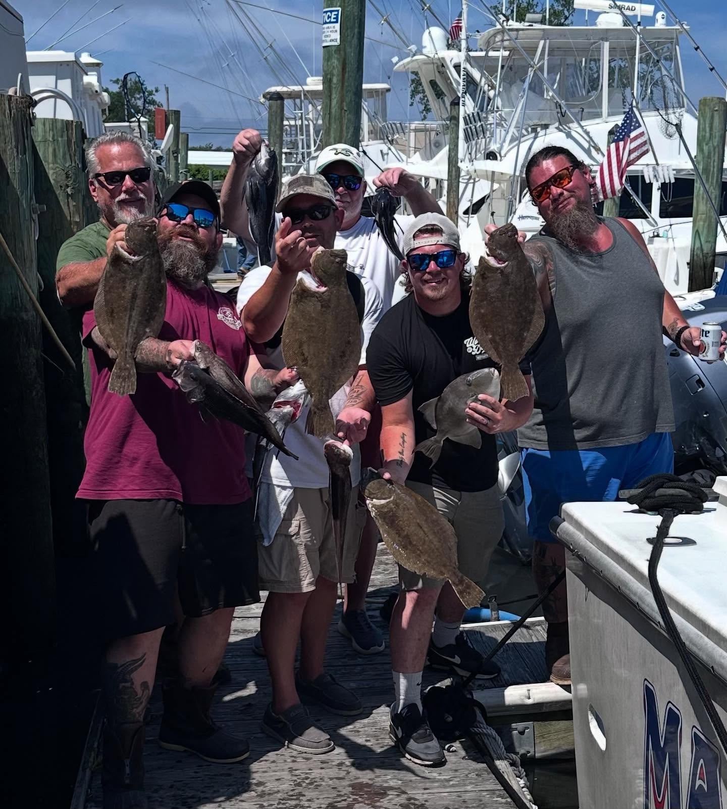 Friday 7/11 with Adam and co. Fluke were biting for the first couple hours both short life and keepers then dropped to nothing. Bounced to a dozen different spots, big moves little moves all produced the same for us. Just a tough day but not from lack of trying. They pounded the bottom all day. Ended up with a nice mixed bag of fluke, sea bass, ling, triggers just not as much as we’re used to seeing. Tomorrow’s another day I guess. As always, thanks for a great trip, always a hilarious group of guys to fish with.